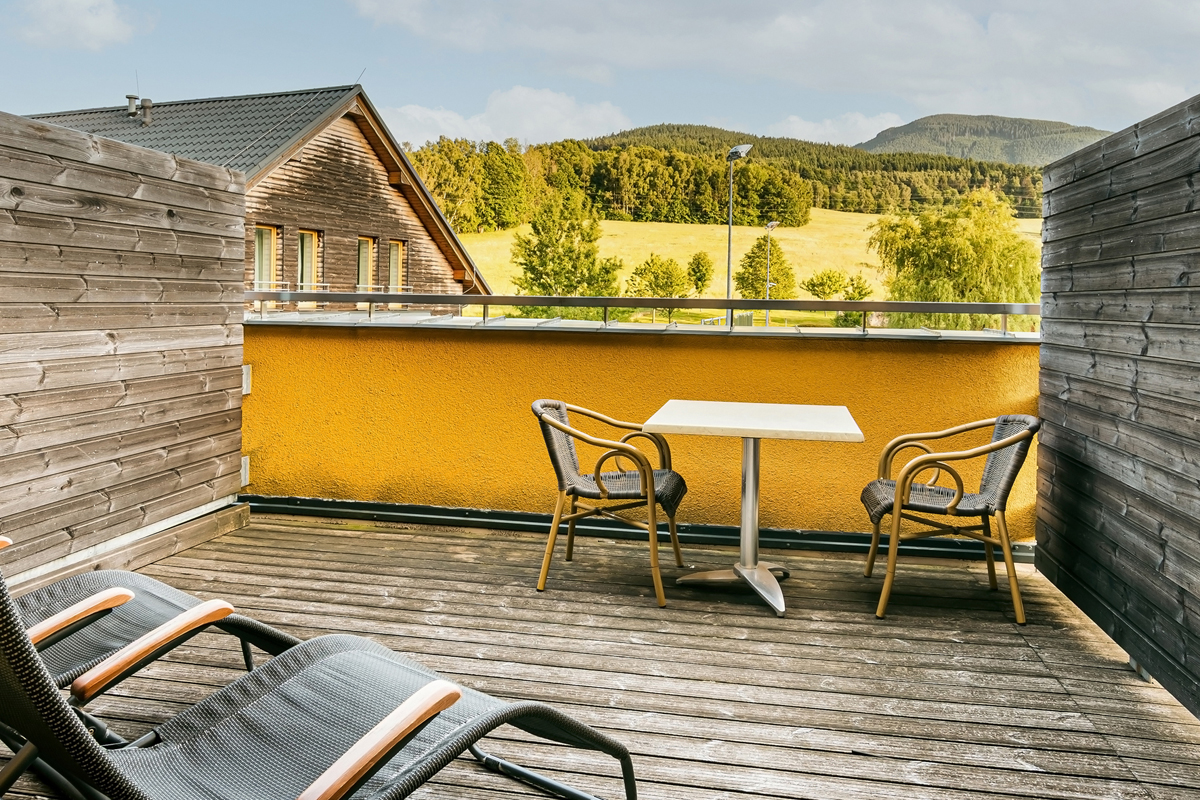25 m² - pokoj s manželskou postelí či s oddělitelnými lůžky a 1 přistýlka pro 1 dítě do nedovršených 12 let, sociální zařízení, balkon