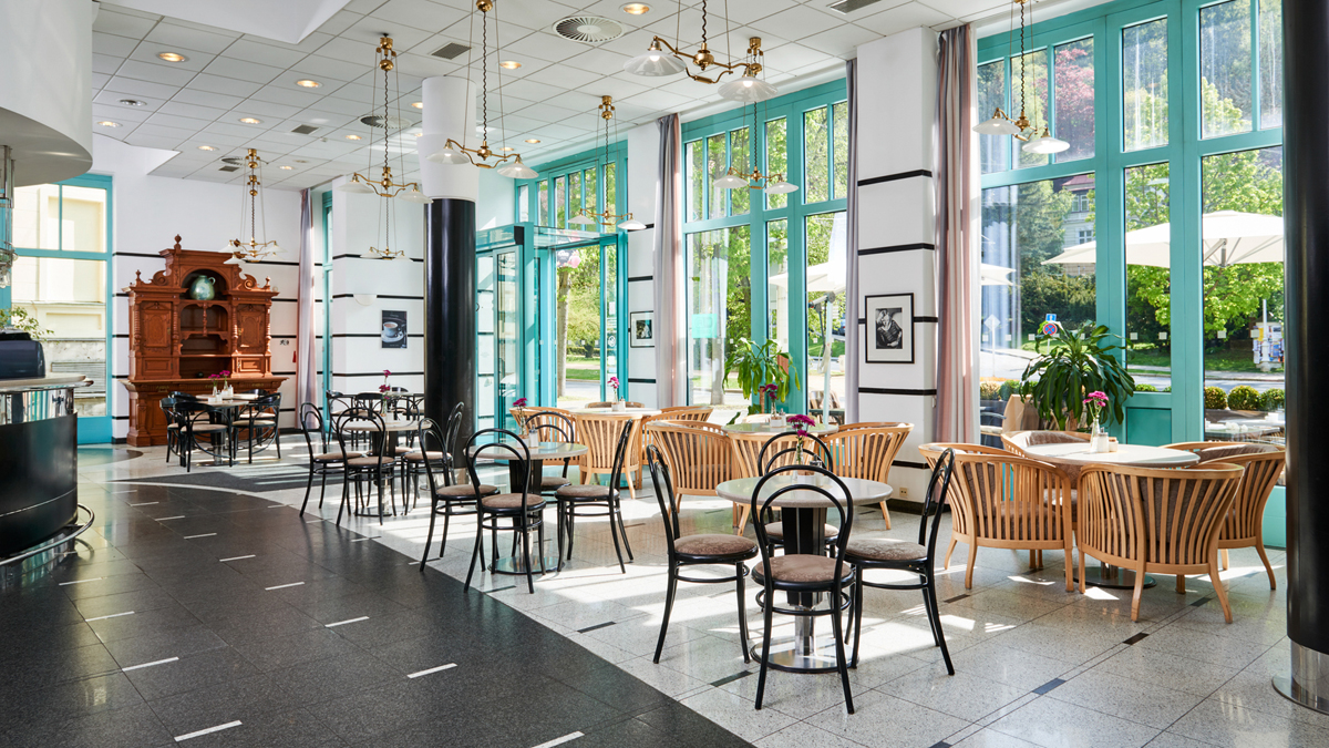 secesní budova hotelu v centru Mariánských Lázní přímo u hlavní kolonády