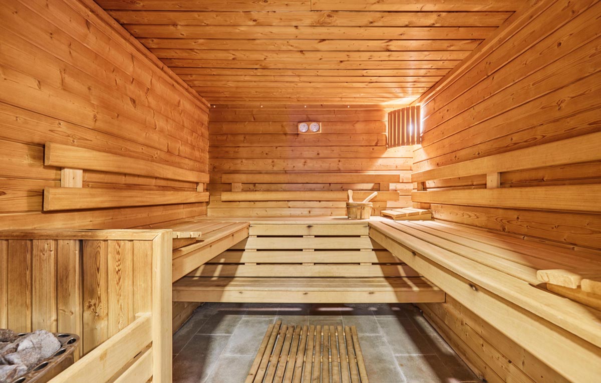 částečně krytý a částečně venkovní vyhřívaný bazén 60 m² s lehátky, vířivka*, sauna*, pára*, relaxační koutek s lehátky, multifunkční sprcha*, menší posilovna; v blízkosti golfové hřiště*