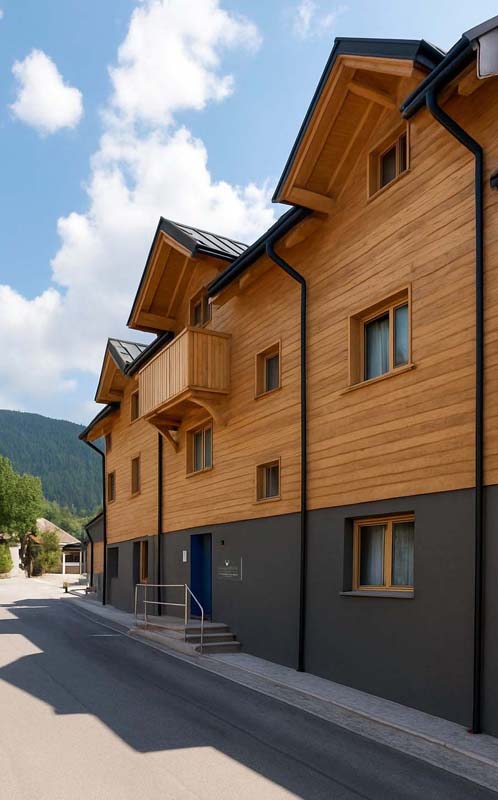 35 až 40 m² - 1 ložnice s manželskou postelí, obývací pokoj s kuchyňským koutem a rozkládacím gaučem pro 2 osoby (160x200), sociální zařízení se sprchovým koutem typu walk-in, balkon (pouze u jednoho apartmánu)