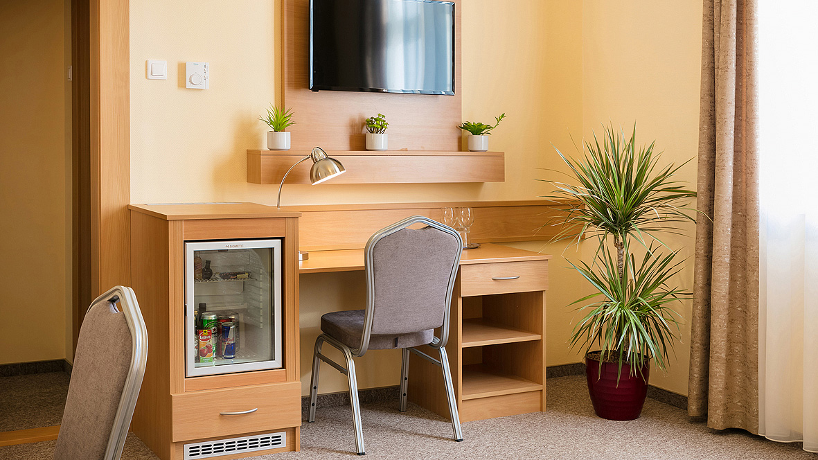 TV sat., telefon, klimatizace, trezor, kávovar, wi-fi připojení k internetu, minibar*, fén, župan