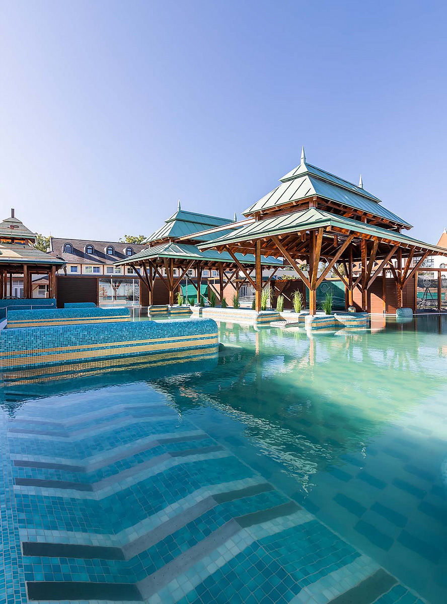 vlastní vyhřívaný bazén a venkovní sauna (v oblíbeném sudu), terasa; přímý venkovní vstup přes zahradní branku do sousedních lázní Flexum Thermal & Spa: krytý bazén, plavecký bazén, termální bazén, dětský bazén, saunový svět*, lázeňský pramen pro pitnou kúru, sluneční terasa s lehátky