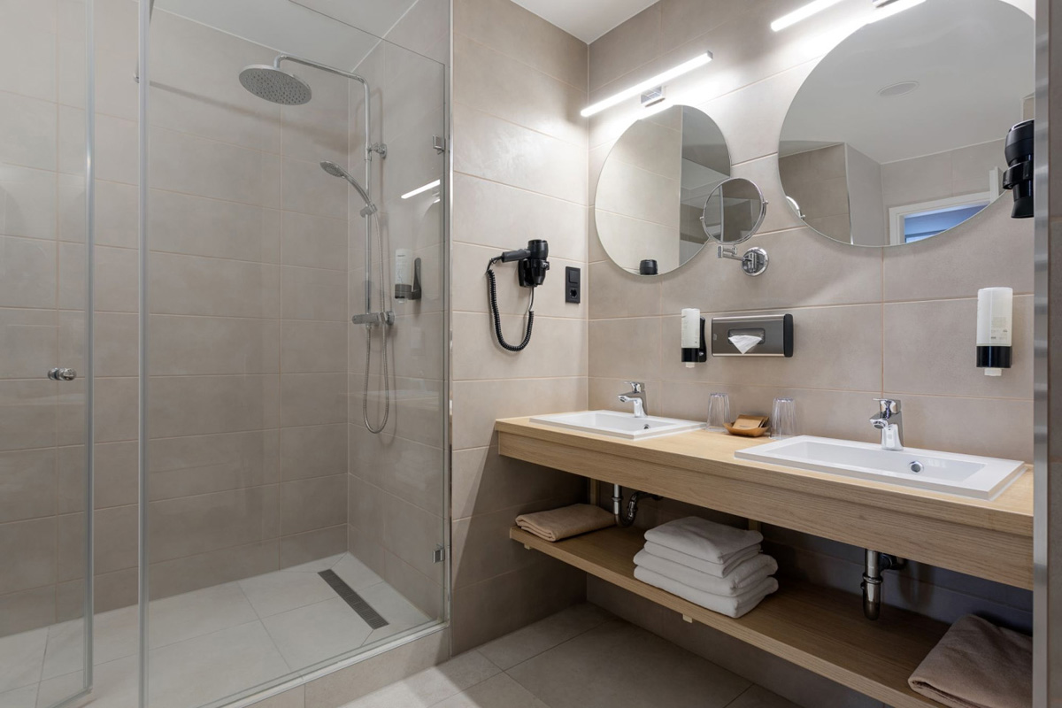 Saunový svět v přízemí hotelu nabízí finskou saunu, infrasaunu, aroma kabiny, parní kabiny a tropickou sprchu.