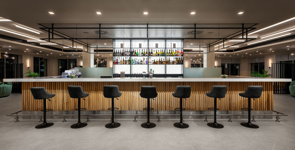 recepce, lobby, bar, restaurace, přímé propojení s městskými lázněmi, 3 konferenční místnosti různých velikosti pro 80-180 osob, wi-fi připojení k internetu, výtah, dětská herna, parkovací stání*, dobíjecí stojan pro elektromobily a úschovna kol