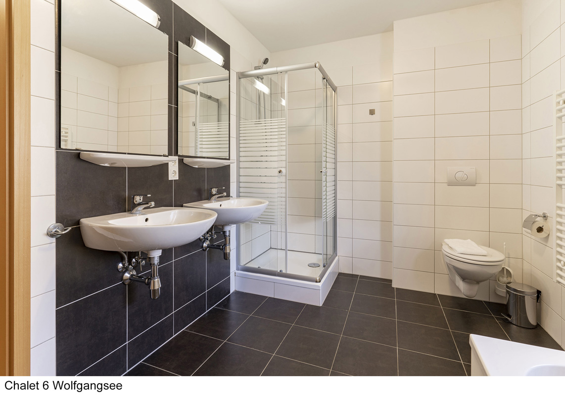 65 m² - 1. podlaží chaletu: obývací pokoj s kuchyňským a jídelním koutem, gauč, samostatné WC, terasa; 2. podlaží chaletu: 2 ložnice s manželskou postelí či 2 samostatnými lůžky, 2x sociální zařízení se sprchou (vstup vždy z ložnice), balkon