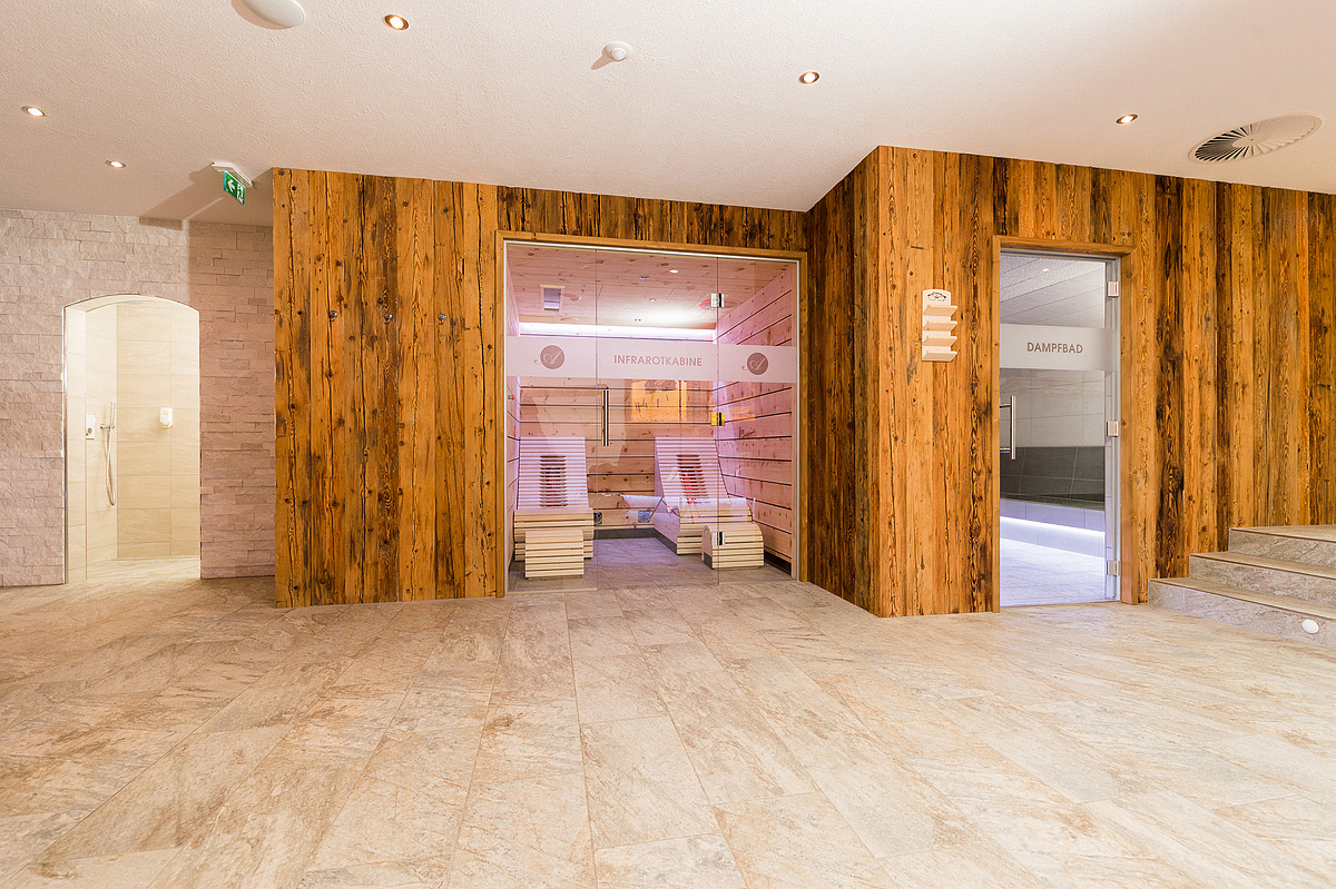 venkovní bazén 110 m² s dětským bazénkem (vyhřívaný, v provozu cca. od dubna do 30.10., denně od 07.30 do 21.30), 2x sauna, 2x pára, infrakabina, zážitková sprcha, relaxační koutek s lehátky, masáže*, stolní tenis, stolní fotbal*, biliár*; wellness v provozu od 16.00 do 21.30