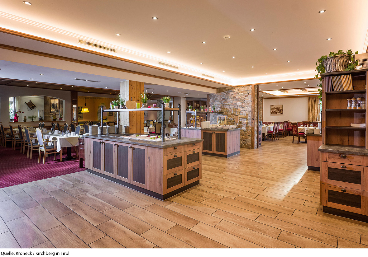 recepce / lobby, restaurace vyhrazená pro hotelové hosty / bar, restaurace à la carte, typická rakouská pivnice, kavárna, společenská místnost s TV, wi-fi připojení k internetu, sluneční terasa s posezením, zimní zahrada, dětský koutek s TV, úschovna kol, 3x výtah, vyhrazené parkoviště, garážová stání*