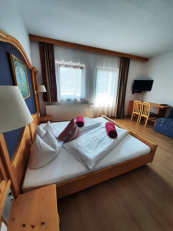 25 m² - pokoj s manželskou postelí, sociální zařízení se sprchou či vanou, balkon; pokoj lze obsadit i 1 dospělou osobou a dítětem do nedovršených 15 let se slevou