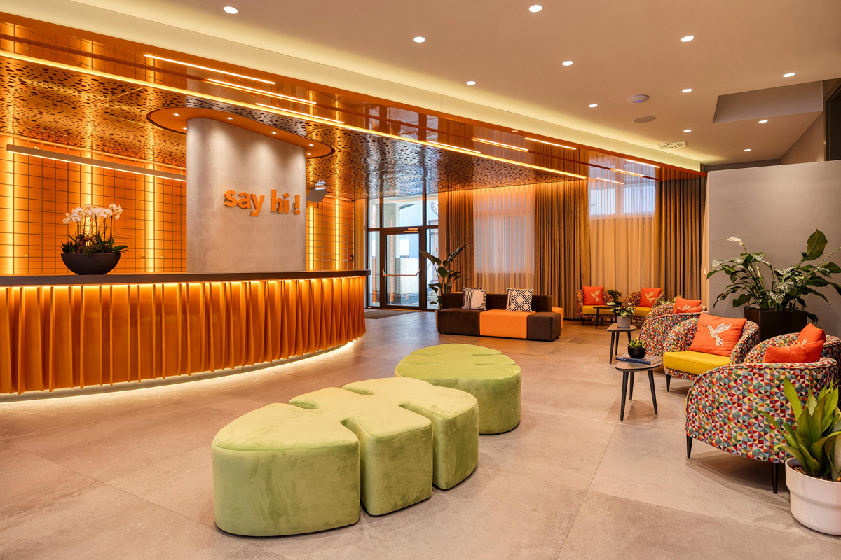 recepce / lobby, snídaňová restaurace vyhrazená pro hotelové hosty, restaurace, bar, wi-fi připojení k internetu, sluneční terasa s posezením, místnost na úschovu zavazadel, výtah, garážová stání*, nabíjecí stanice elektroaut*