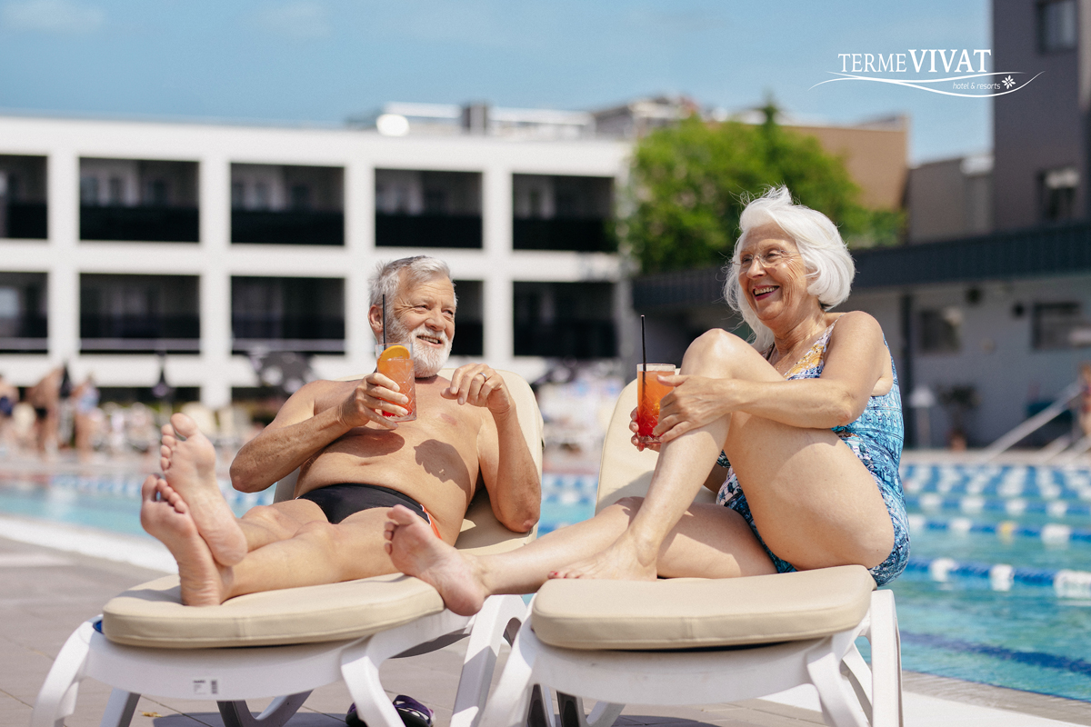 Bazénový komplex Terme Vivat zahrnuje přibližně 2000 m² vodní plochy s vnitřními i venkovními bazény. Termální voda v lázních Vivat je voda hydrogenuhličitano-chlorido-sodného typu, která má uznávaný status přírodního léčivého prostředku. Koupání v této vodě má na tělo mimořádně pozitivní vliv, osvěžuje ho, zlepšuje krevní oběh, snižuje nervové napětí a pomáhá pokožce se rychleji opálit.