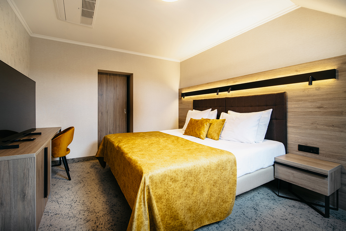 V roce 2024 kompletně zrekonstruovaný moderní desingnový hotel tvořený 2 vzájemně propojenými budovami nabízí veškerý komfort i lázeňskou péči bez nutnosti návštěvy městských lázní. Klienti tu naleznou kvalitní služby na vysoké úrovni ať již v podobě špičkového stravování či relaxu v soukromích termálních lázních a wellness. Doménou místních lázní je především jedinečná černá termální voda, která má léčivé účinky při revmatických problémy, působí příznivě při ortopedických problémech a po operacích.