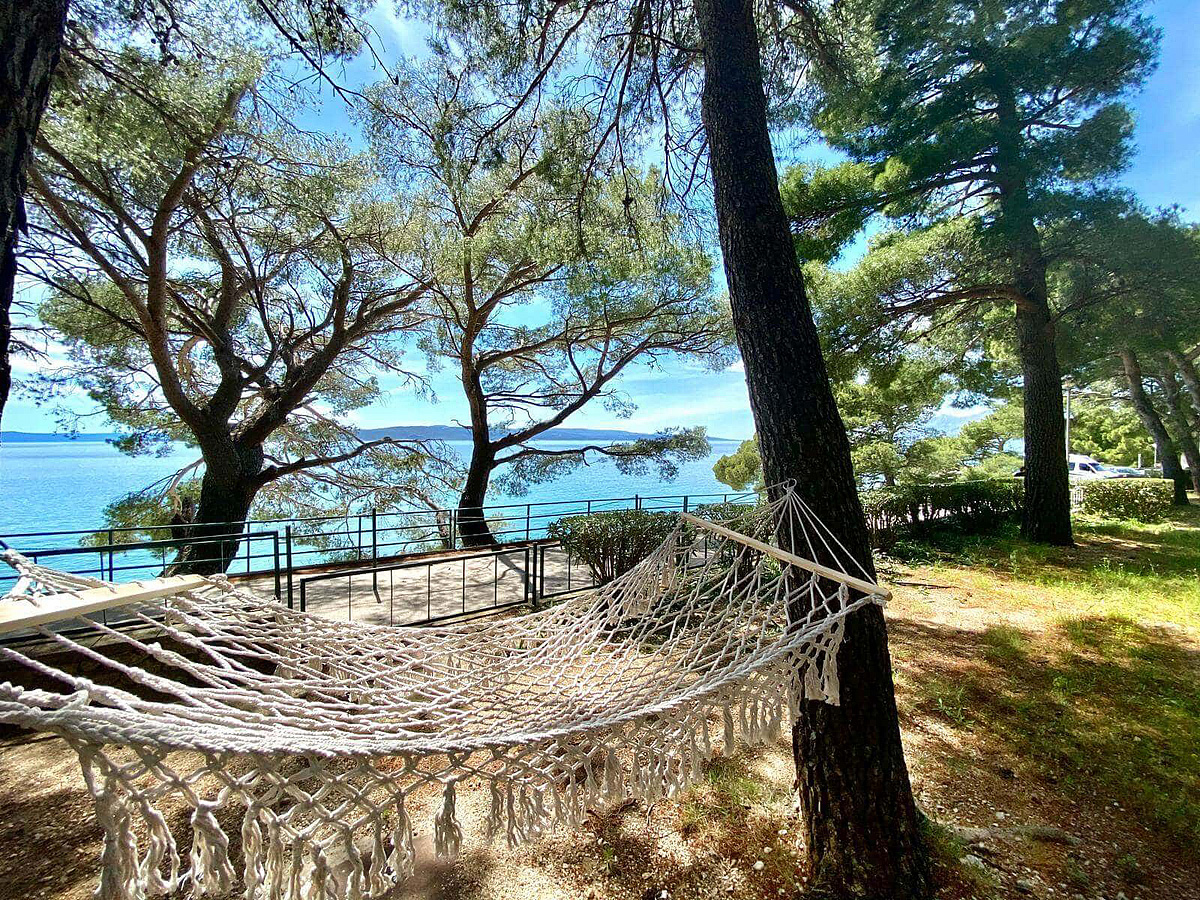 Baška Voda – centrum 500 m, pláž Nikolina / oblázková - 50 m (v závislosti na konkrétním umístění v rámci resortu), letiště Split – 70 km