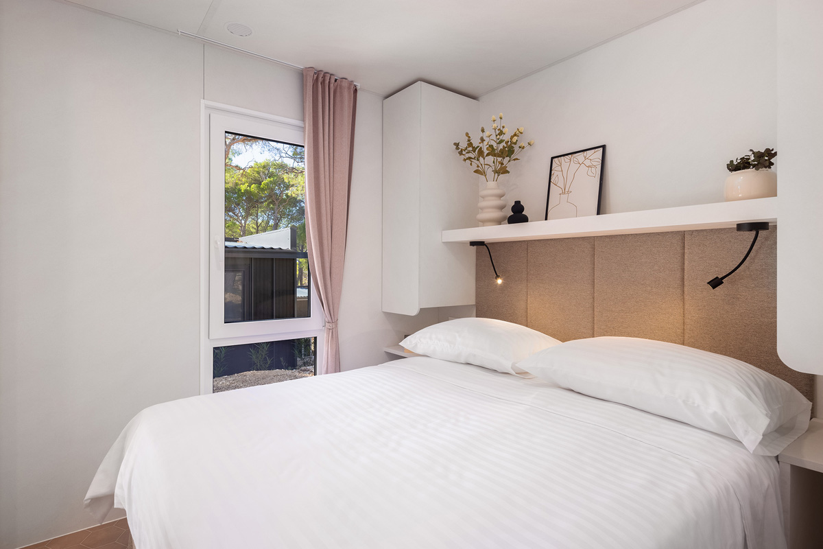 Mobile home typu premium se nachází v centrální části kempu v blízkosti bazénového komplexu a dětského hřiště.