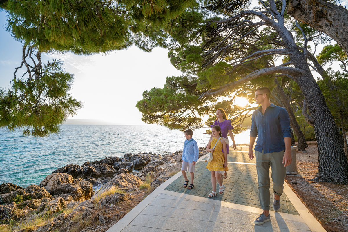 • široká oblázková pláž vhodná pro děti pouze 50 m od hotelu