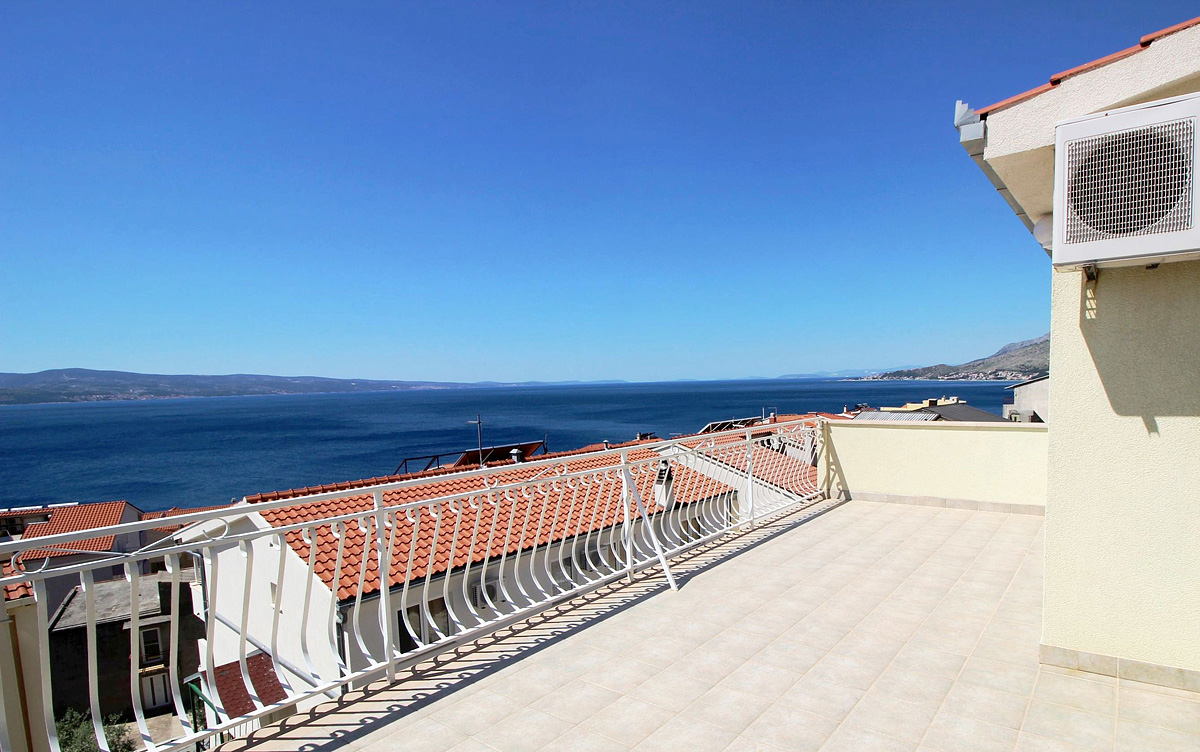 trilo 4/5/6 - 2 ložnice s manželskou postelí, obývací pokoj s kuchyňským koutem a rozkládacím gaučem až pro 2 osoby, 2x sociální zařízení, balkon s výhledem na moře