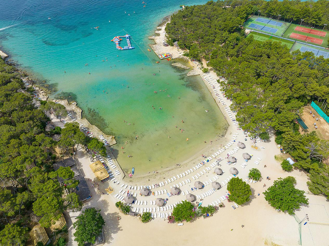 Pine Beach Pakoštane je jedinečný eco resort na chorvatském pobřeží, který spojuje autentickou středomořskou atmosféru s pohodlím all inclusive light služeb. Nachází se v malebné zátoce obklopené borovicovým lesem a nabízí více než kilometr přírodní písečné pláže – jednu z mála v Chorvatsku.