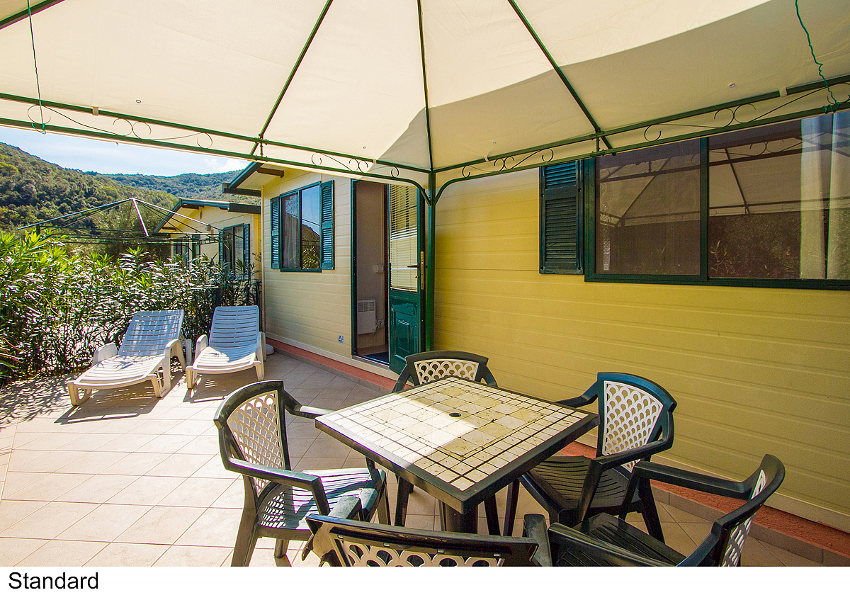 19 až 24 m² - 1 ložnice s manželskou postelí, 1 ložnice se 2 samostatnými lůžky, obývací pokoj s kuchyňským koutem, sociální zařízení se sprchou, terasa