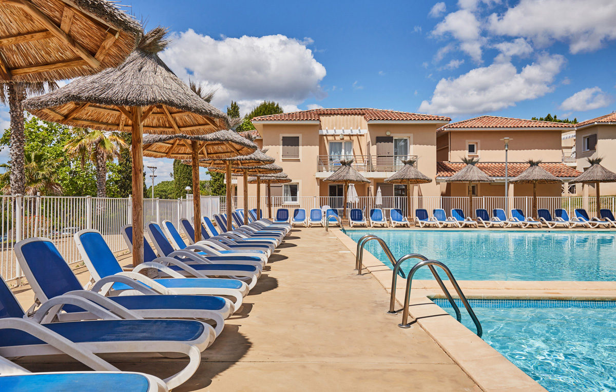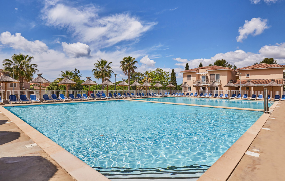 2 x venkovní bazén 16 x 12 m s lehátky (od 15.04. do 15.10.), dětský venkovní bazének s lehátky, malá posilovna, tenisový kurt, sauna*, pára*, biliár* a stolní fotbal*