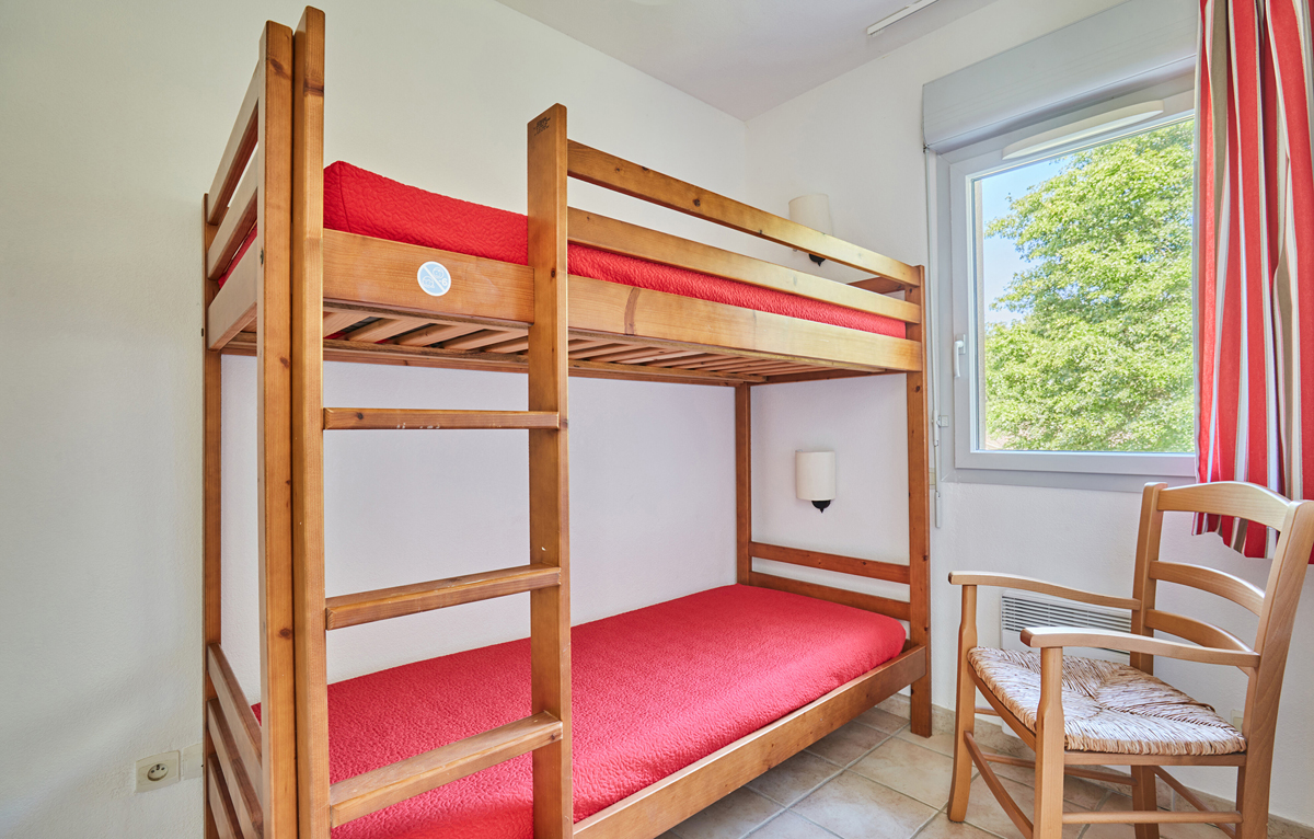 44 m² 1 ložnice s manželskou postelí, 1 ložnice se 2 samostatnými lůžky, kabina s palandou, obývací pokoj s kuchyňským koutem a rozkládacím gaučem (typ šuplík), koupelna, sprchový kout, oddělené WC; apartmány jsou dvoupodlažní