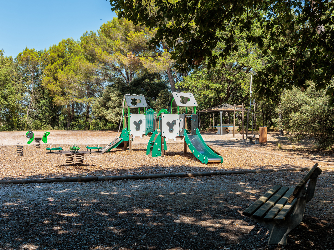 2x venkovní bazén (větší nevyhřívaný, menší vyhřívaný), dětský venkovní bazének s lehátky, menší posilovna, sportovní hřiště pro míčové sporty, dráha pro petanque, stolní tenis; v blízkosti cyklostezka