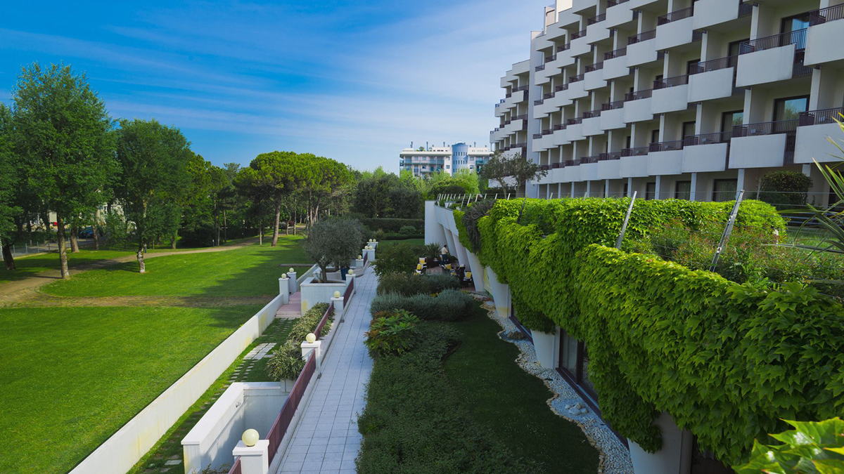 bazény pro dospělé, vířivka, dětský bazén s gejzírem a podiem pro animaci a zábavu, sluneční terasa s lehátky, „pool“ bar, střešní terasa s fitness zónou, zahrada, plážový servis (1 slunečník, 2 lehátka a osušky / pokoj; zhruba od půlky května do půlky září) v ceně, půjčovna kol, elektrokol*, holí pro nordic walking; animace pro děti i dospělé (v italském , anglickém, německém jazyce); od poloviny května do konce září vstup do termálních bazénů zdarma (kromě úterý), vstup do wellness zóny se saunami, tureckou lázní (při pobytu na min. 7 nocí)