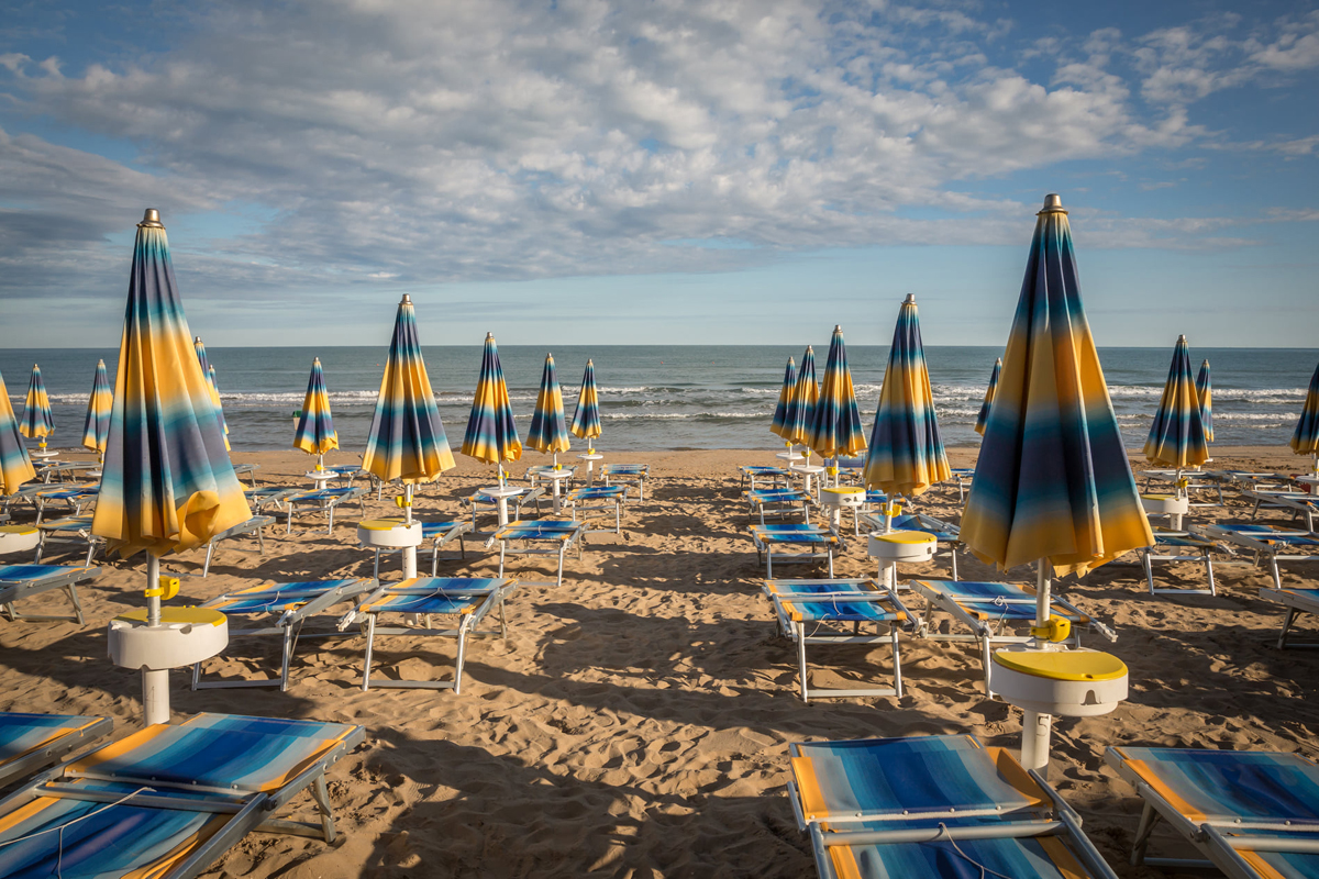 plážový servis (1 slunečník a 2 lehátka / pokoj v ceně, od. 2 řady)