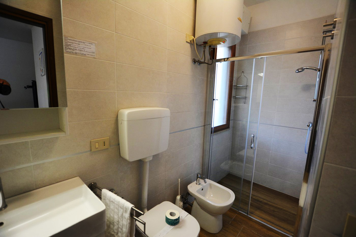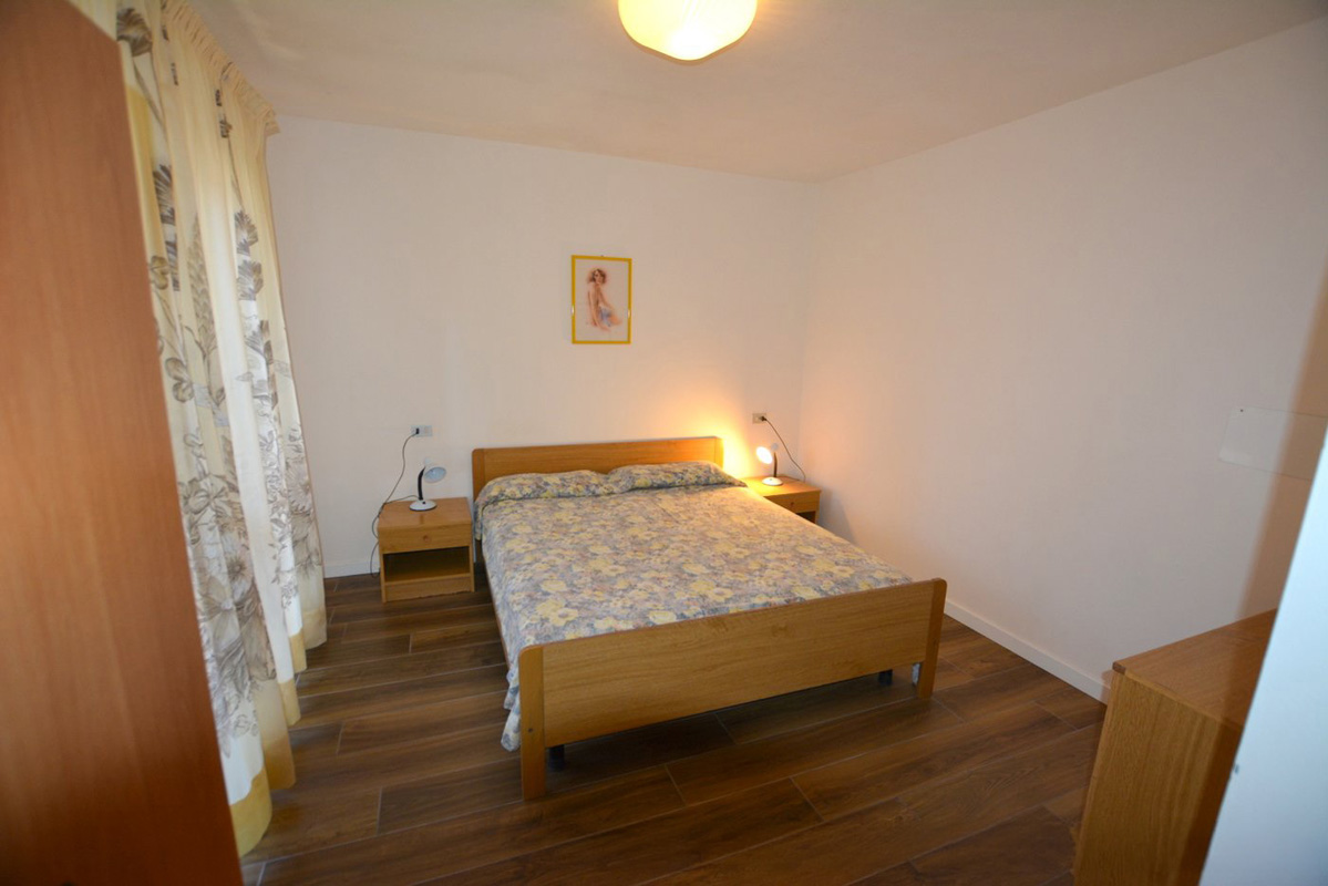 1 ložnice s manželskou postelí, 1 ložnice s rozkládacím gaučem pro 2 osoby, obývací pokoj s kuchyňským koutem a rozkládacím gaučem pro 2 osoby, sociální zařízení se sprchou, terasa