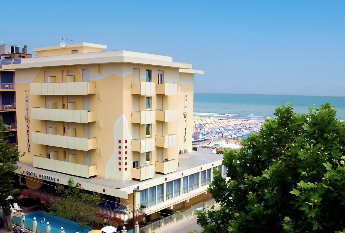 jednoduchý hotel s bazénem přímo u plážové promenády