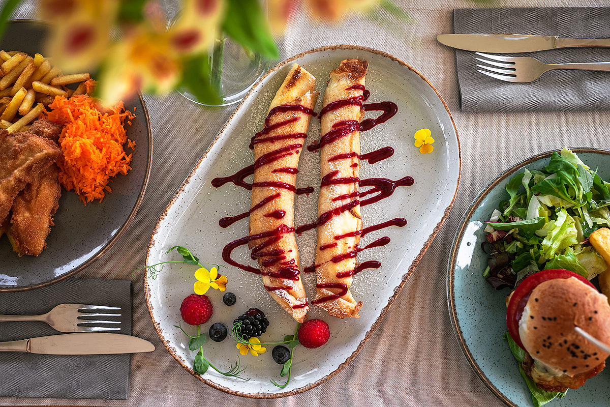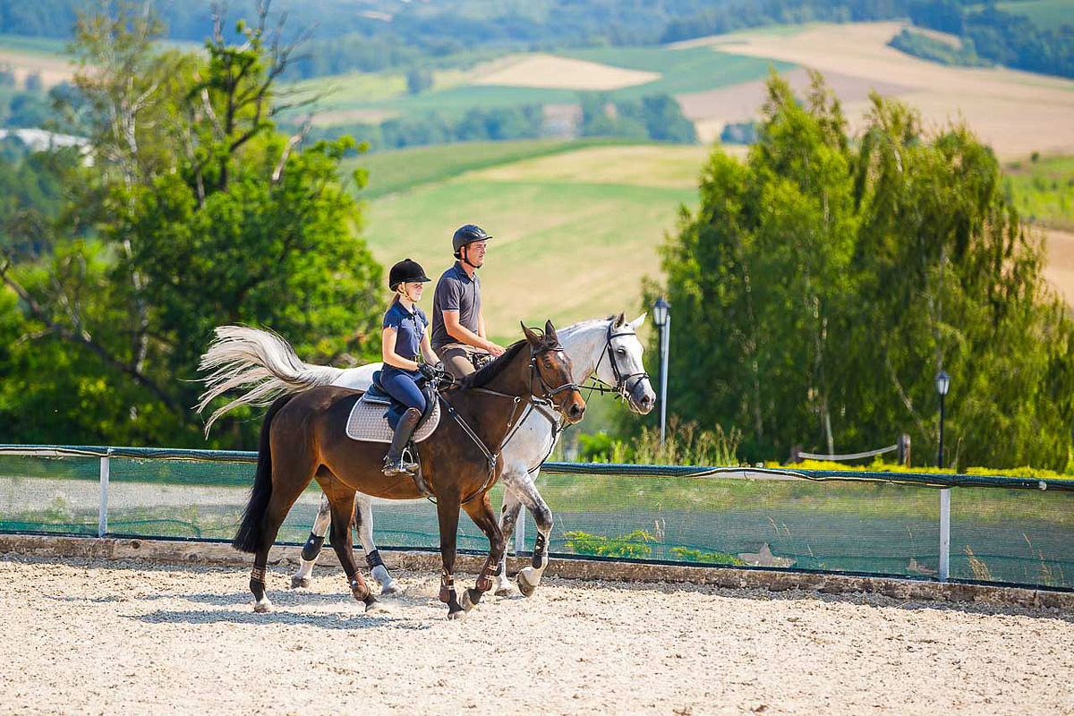 malá sauna* pro 3 osoby a vířivka* (90 minut zdarma / osobu / pobyt), posilovna, hřiště na volejbal a badminton, stáje a jízdárna* (nutná rezervace v místě)