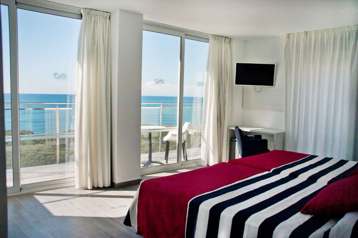 Standard 2/3/4 Sea View - pokoj s manželskou postelí či 1 či 2 samostatnými lůžky a 1 či 2 přistýlky, sociální zařízení, balkon s výhledem na moře