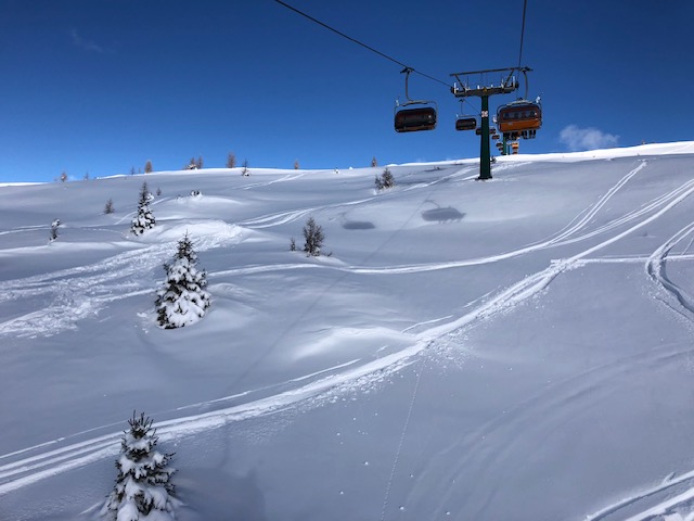 V posledních 3 dnech v oblasti Val di Fiemme hustě sněžilo a na kopcích napadlo přes 70 cm čerstvého sněhu. Na sjezdovkách leží přes 1 m sněhu. Noční mrazíky a chladnější dny s vyšší pocitovou teplotou jsou zpět, noční teploty se nahoře pohybují kolem -3 až -8 °C.