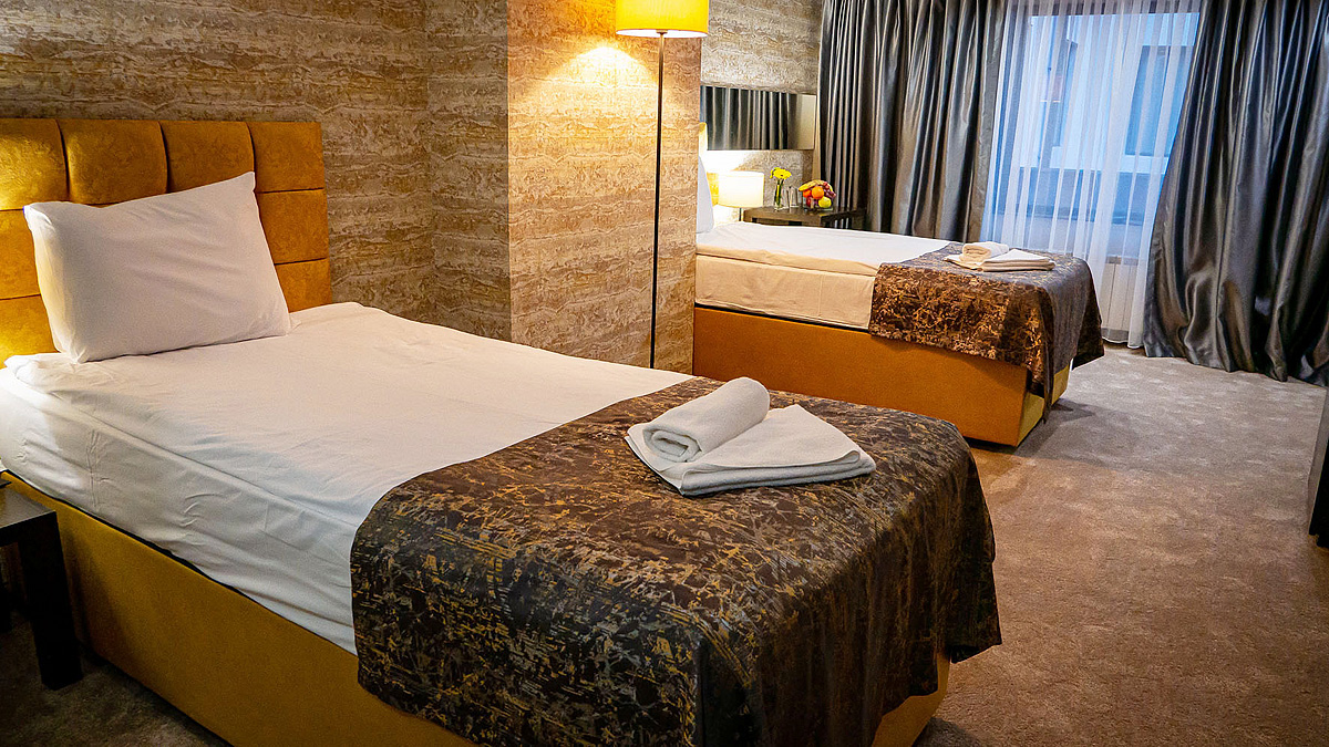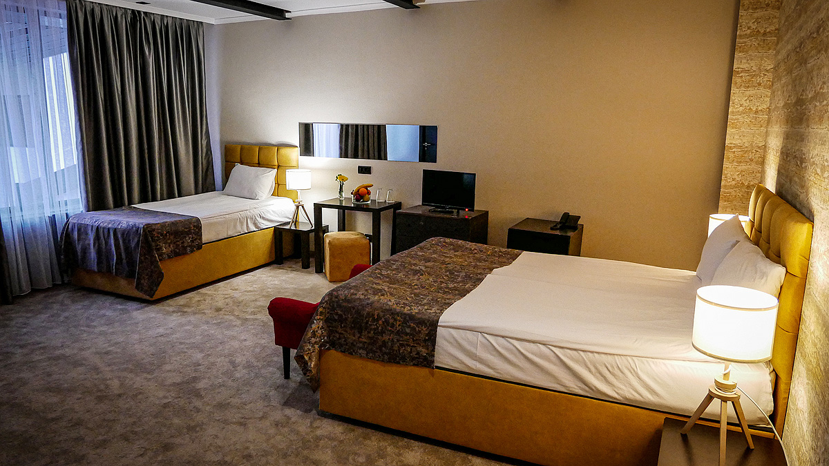 25-30 m² – ložnice s manželskou postelí či s 2 samostatnými lůžky a možností až 2 přistýlek pro 2 děti do nedovršených 13 let, sociální zařízení se sprchou či vanou, některé pokoje s balkonem*