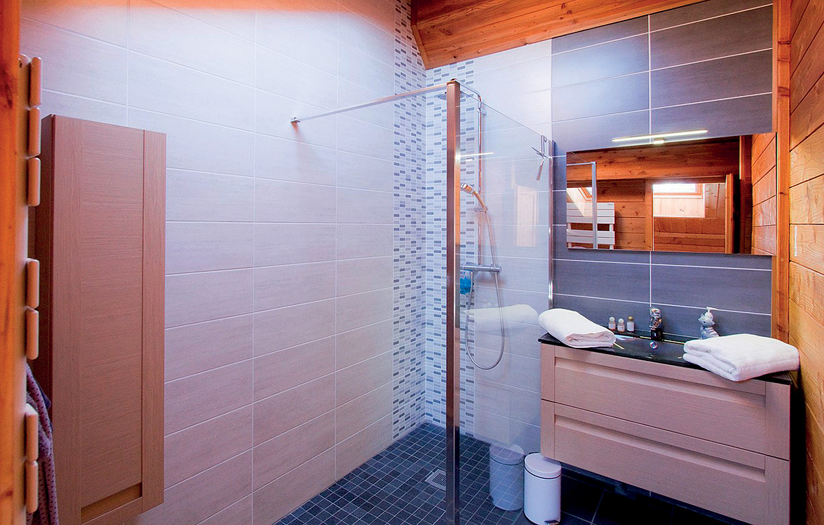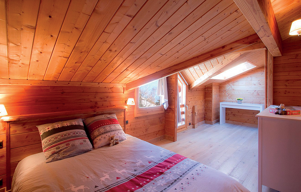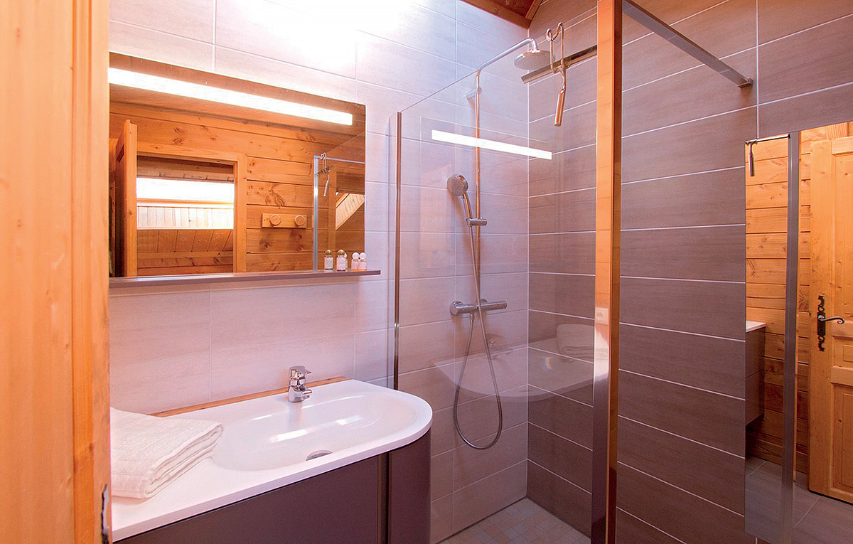 200 m² - 1. podlaží chaletu: 1 ložnice se 2 samostatnými lůžky, 1 ložnice se 2 palandami, 2x sociální zařízení; 2. podlaží chaletu: 1 ložnice s manželskou postelí, obývací pokoj s krbem a kuchyňským koutem, sociální zařízení, terasa s vířivkou; 3. podlaží chaletu: 2 ložnice s manželskou postelí, 2x sociální zařízení