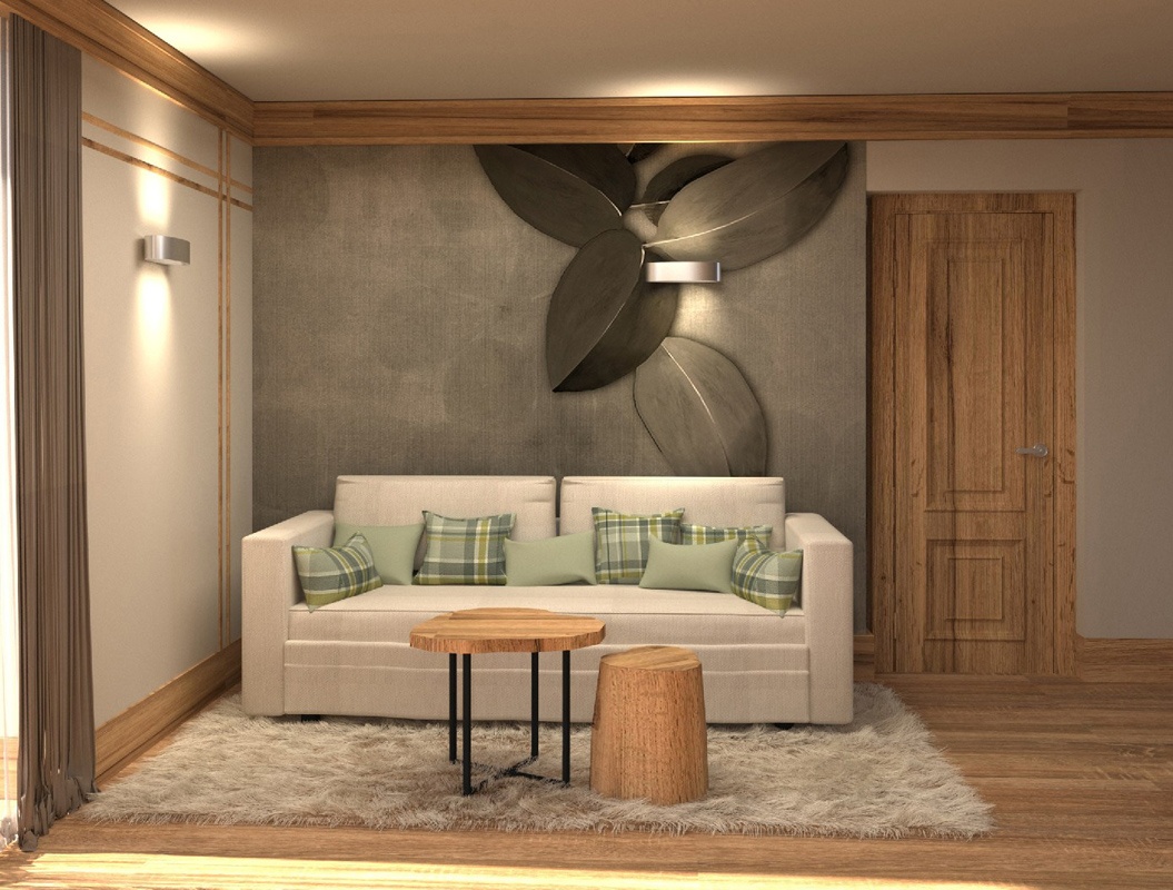 38 m² - 1 ložnice s manželskou postelí či 2 samostatnými lůžky, obývací pokoj s kuchyňským koutem a rozkládacím gaučem pro 2 osoby, sociální zařízení se sprchou, balkon s privátní bio saunou