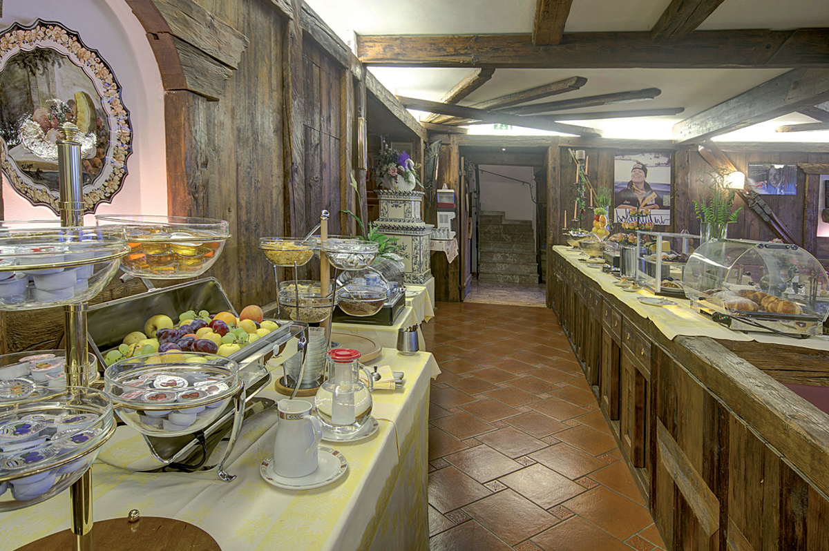 recepce, restaurace, bar, taverna, společenská místnost s TV, sluneční terasa, wi-fi připojení k internetu, výtah, úschovna lyží a lyžařských bot, vyhrazené parkoviště u hotelu* (počet míst omezen, nutnost rezervace dopředu), bezplatné parkování cca 70m od hotelu