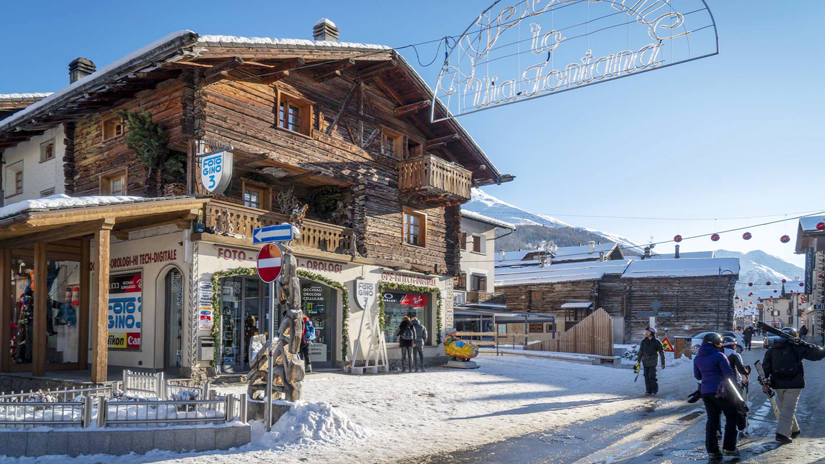 jeden z apartmánových domů ležících přímo v centru Livigna na pěší zóně