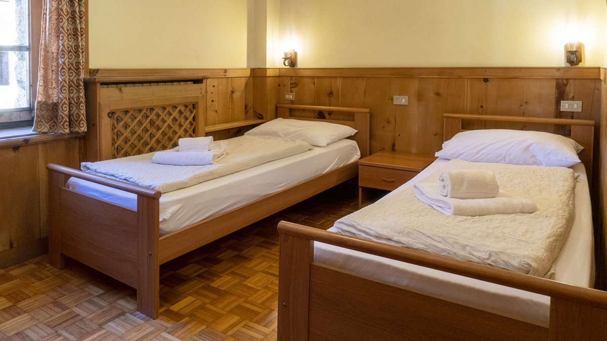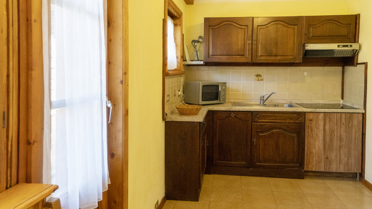 1 ložnice s manželskou postelí či 2 samostatnými lůžky, 1 ložnice se 2 samostatnými lůžky (možno spojit), obývací pokoj s kuchyňským koutem a rozkládacím gaučem pro 2 osoby, sociální zařízení se sprchou, balkon; apartmán se nachází v 1. patře