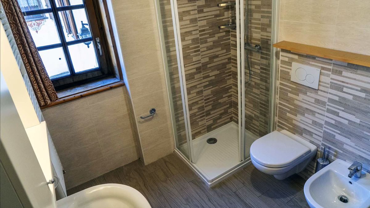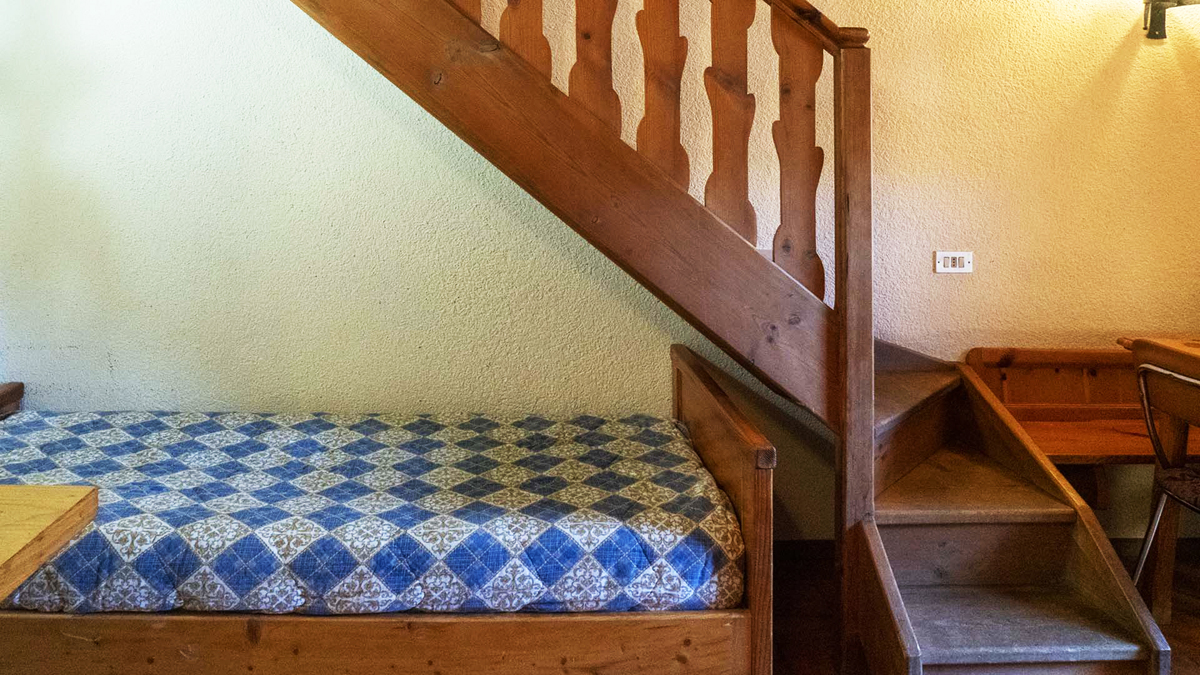 1 ložnice s manželskou postelí či 2 samostatnými lůžky a balkonem, 1 ložnice se 2 samostatnými lůžky (možno spojit), obývací pokoj s kuchyňským koutem, sociální zařízení se sprchou; apartmán je situován v podkroví