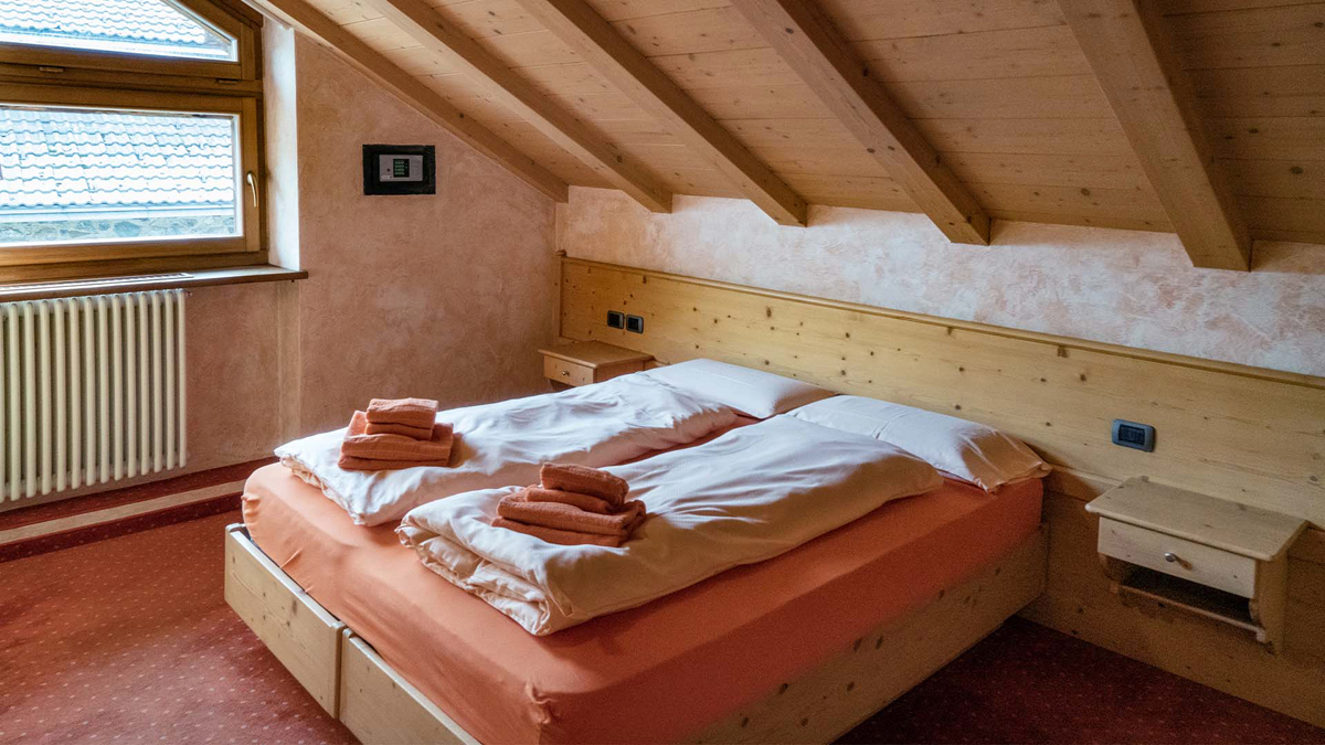 dvoupodlažní; 1. podlaží – obývací pokoj s kuchyňským koutem a rozkládacím gaučem pro 2 osoby, sociální zařízení se sprchou, malý balkon, 2. podlaží - 1 ložnice s manželskou postelí nebo 2 samostatnými lůžky, 1 ložnice se 2/3 samostatnými lůžky, sociální zařízení se sprchou; vchod do apartmánu v 1. patře