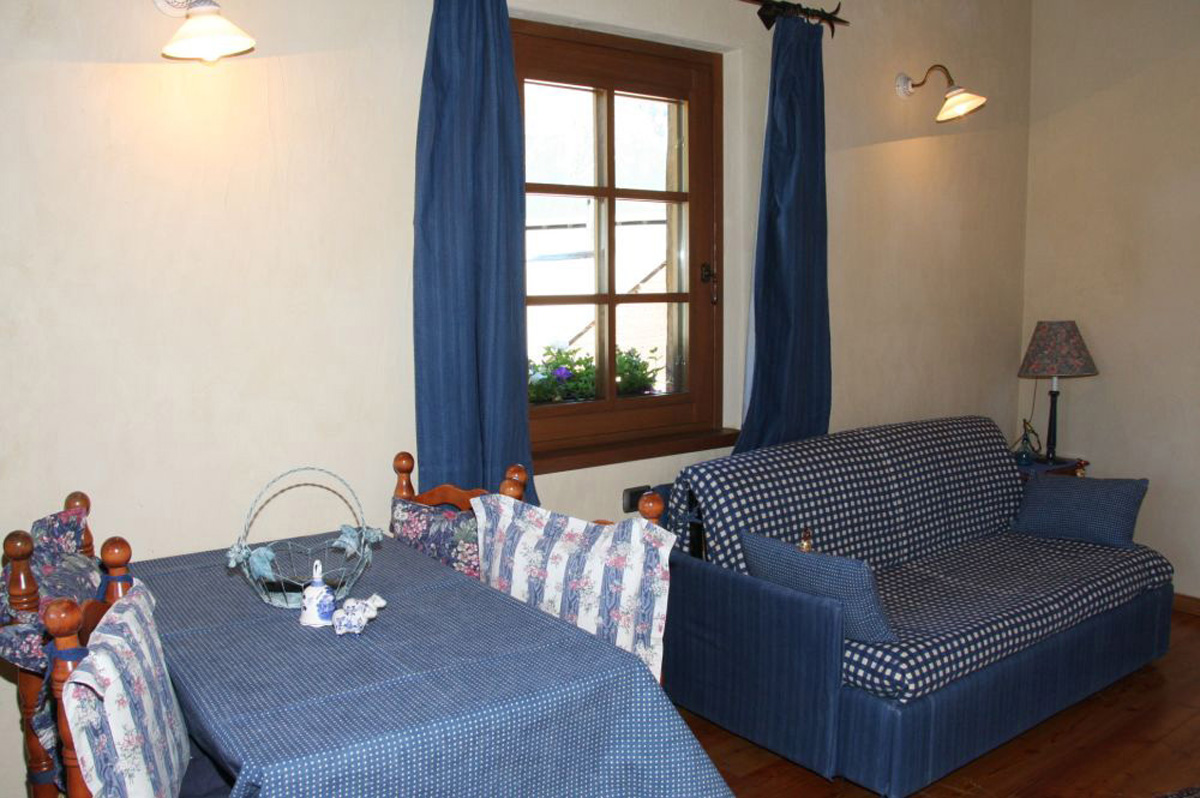 1 ložnice s manželským lůžkem a případným 1 dalším samostatný lůžkem (může být i rozkládací), obývací pokoj s kuchyňským koutem a rozkládacím gaučem pro 1/2 osoby, sociální zařízení se sprchou, balkon; apartmán se nachází v přízemí