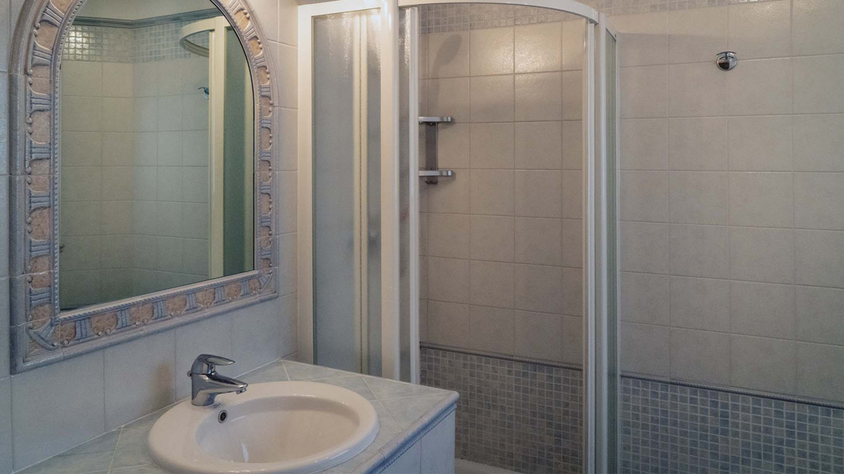bilo 4 - 1 ložnice s manželskou postelí nebo 2 samostatnými lůžky, obývací pokoj s kuchyňským koutem a rozkládacím gaučem pro 2 osoby, sociální zařízení se sprchou a dvojitým umyvadlem (u jednoho apartmánu vchod do koupelny pouze z ložnice), velká terasa orientovaná na východ; apartmán se nachází v 1. a 2. patře