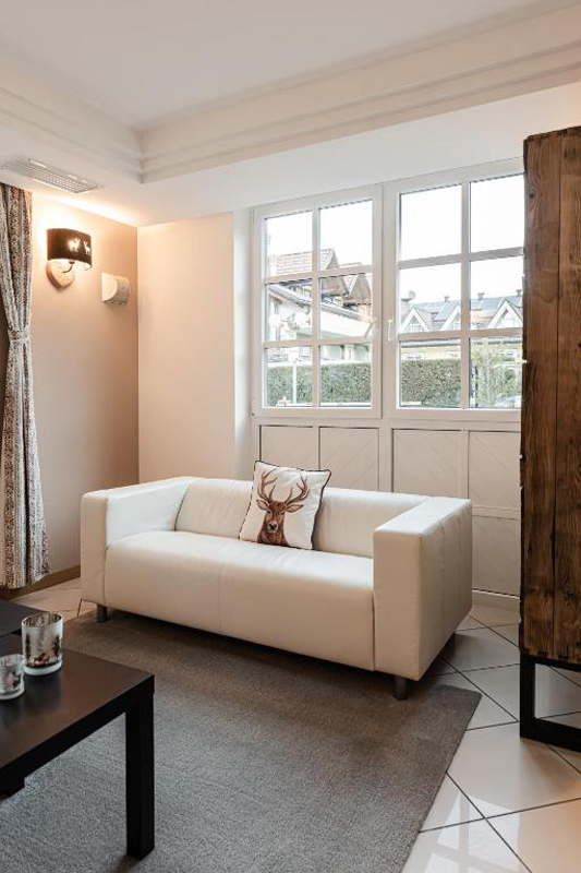 pokoj s manželskou postelí či 2 samostatnými lůžky a případně dalším samostatným lůžkem či palandou, sociální zařízení s vanou, balkon; (3. a 4. lůžka lze obsadit jen dětmi do nedovršených 14 let)