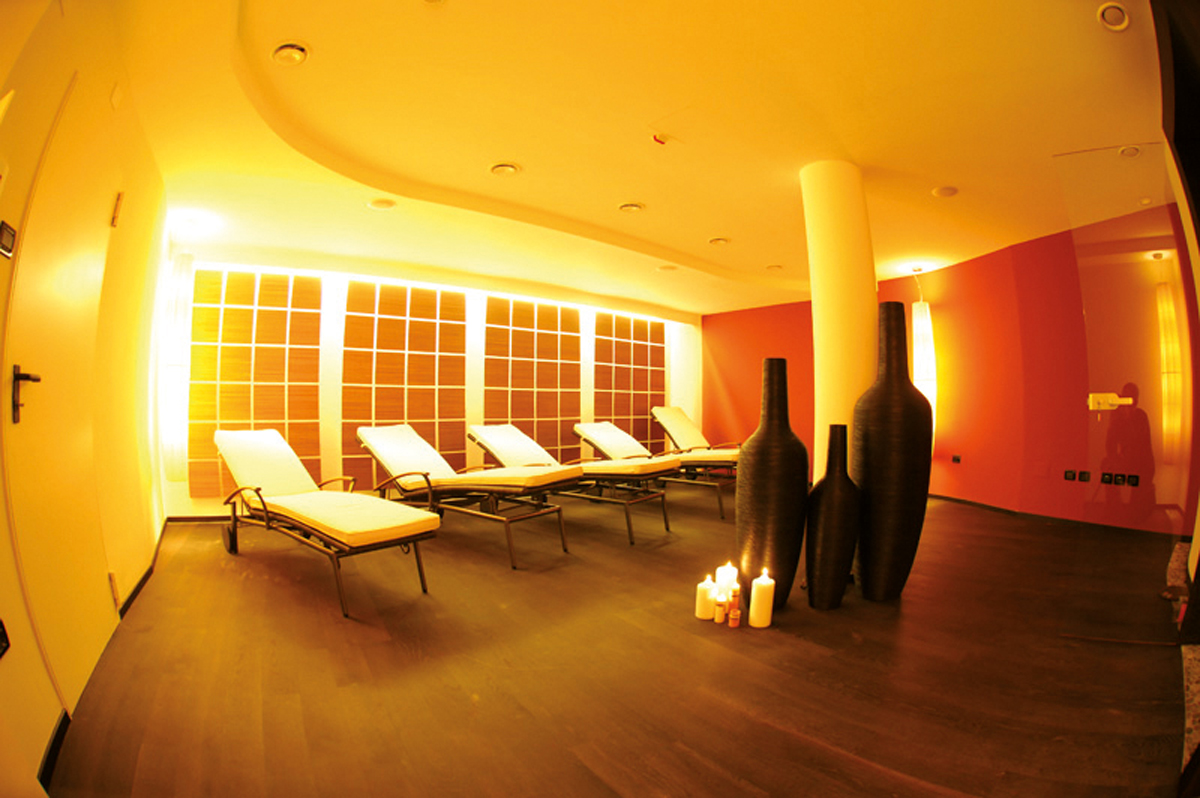 bazén, venkovní vířivka až pro 4 osoby, finská sauna, pára, relaxační koutek s lehátky, masáže*, kosmetické služby*, posilovna