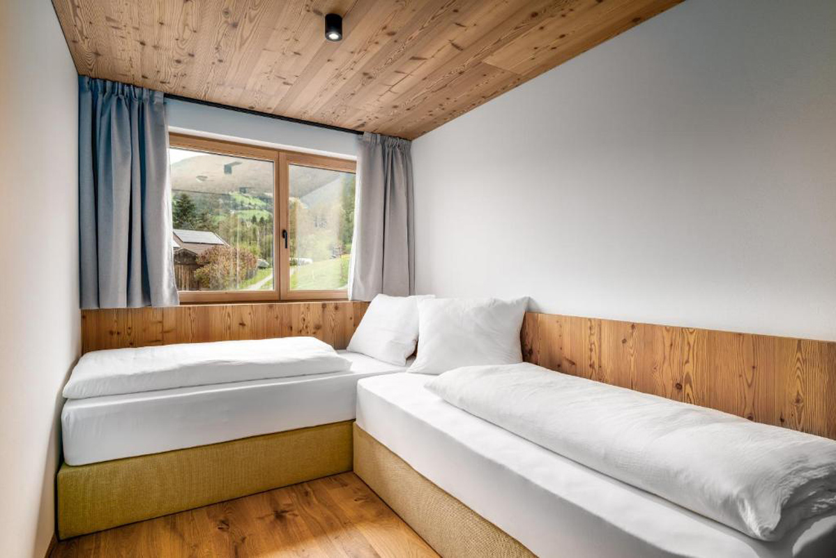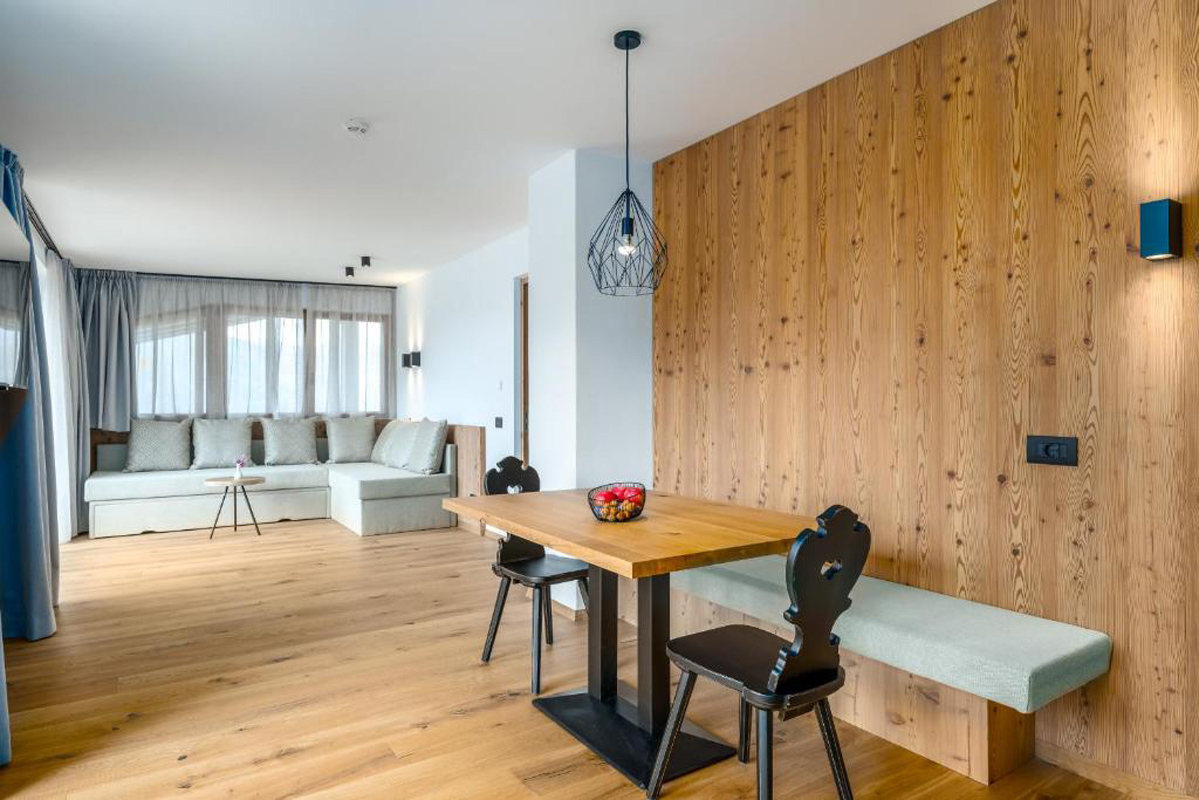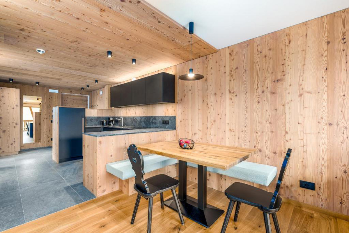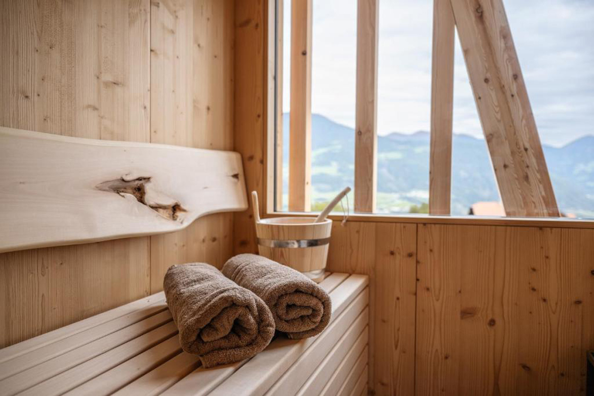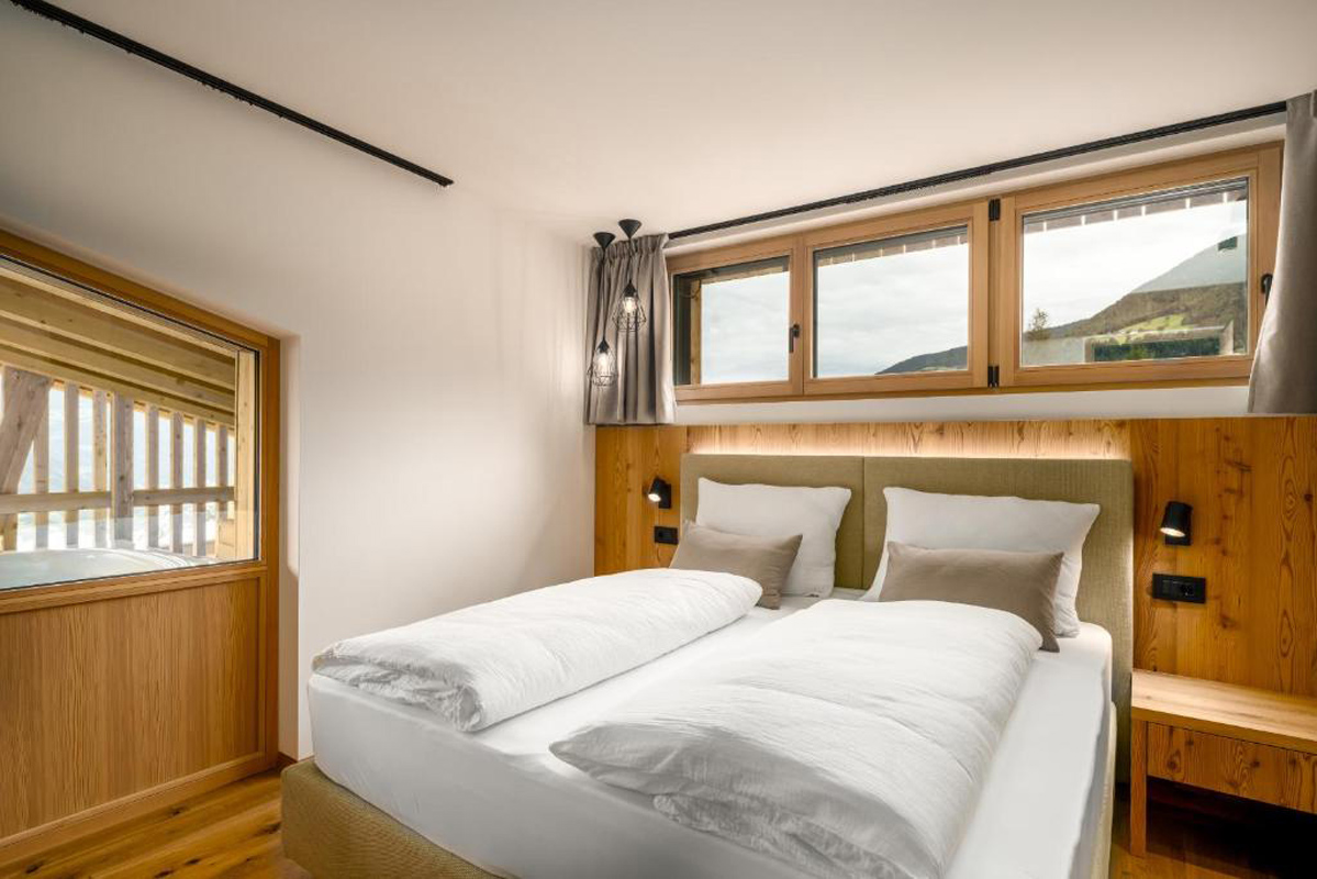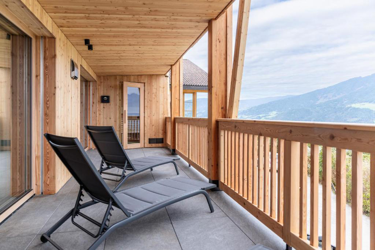 75 m² - 2 ložnice s manželskou postelí, obývací pokoj s kuchyňským koutem a rozkládacím gaučem pro 2 osoby, 2x sociální zařízení se sprchou, balkon 25 m; na balkoně privátní sauna, lehátko a křesílko
