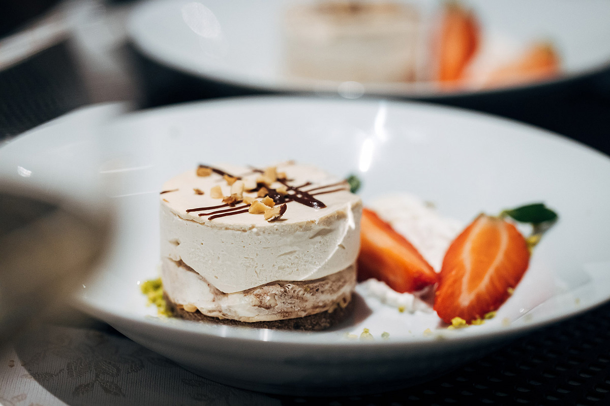 večeře - servírované menu s výběrem ze 2 hlavních jídel s přílohou, studené a teplé předkrmy, saláty a dezerty formou bufetu, nápoje za poplatek