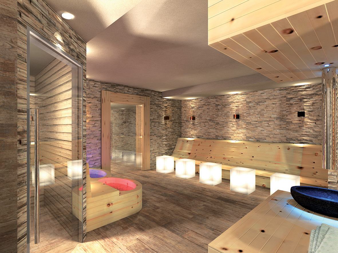 venkovní vířivka# až pro 12 osob, finská sauna#, venkovní finská sauna#, biosauna#, pára#, infrakabina#, atypická ledová lázeň#, 2x multifunkční sprcha#, relaxační koutek# s lehátky a vyhřívanými vodními lůžky, Kneippův chodník#, posilovna#; soukromý relaxační koutek#*; služby označené # mohou využívat jen osoby od 16 let