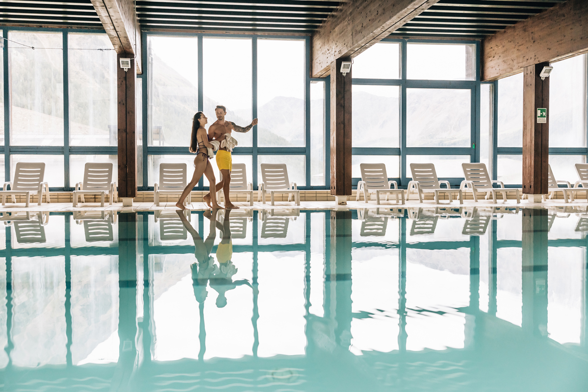 nabídka Blu Hotel Senales Zirm - Cristal - bazén 25 x 10 m s lehátky, vířivka#*, sauna#*, pára#*, relaxační koutek#* s lehátky, Kneippův chodník#*, masáže#*, posilovna#; služby označené # mohou využívat jen osoby od 16 let; nová venkovní panoramatická finská sauna na terase Aparthotelu Maso Corto