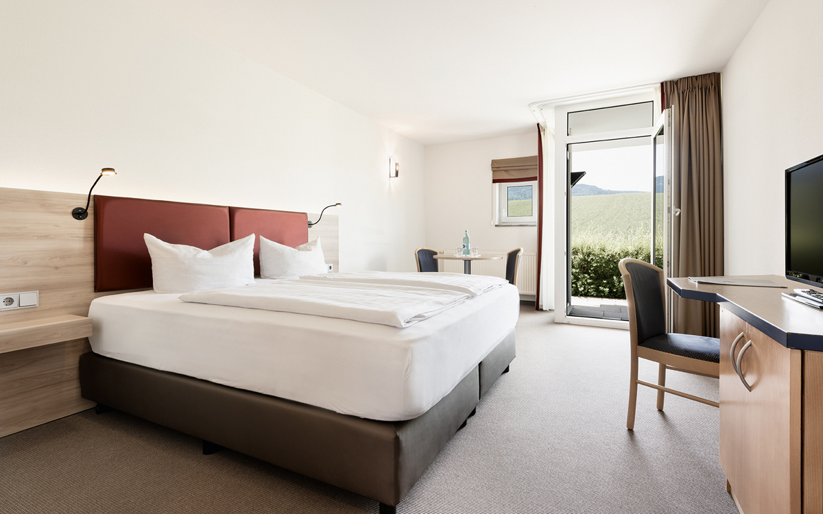 25 až 30 m² - pokoj s manželskou postelí a případně rozkladacím gaučem či přistýlkou pro 1 dítě do nedovršených 15 let, sociální zařízení; pokoje leží v hlavní budově, sdílený balkon či terasa