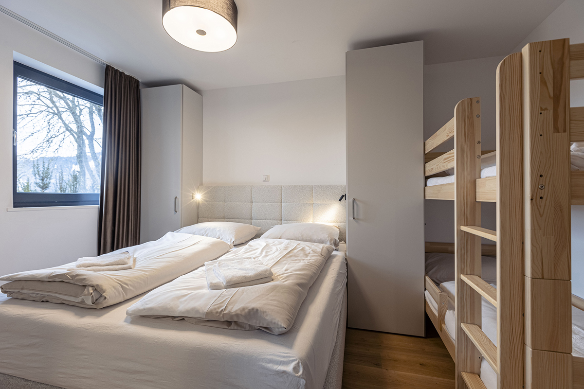 74 m² - 2x ložnice s manželskou postelí, obývací pokoj s kuchyňským koutem a rozkládacím gaučem pro 2 osoby, 2x sociální zařízení, balkon či terasa