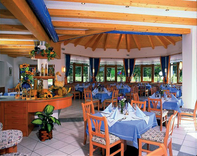 servírované 4chodové menu s výběrem alespoň ze 2 hlavních jídel s přílohou, servírovaný studený či teplý předkrm či polévka, salátový bufet, servírovaný dezert, 1x týdně večeře formou tématického bufetu (např. italský či farmářský); nápoje za poplatek